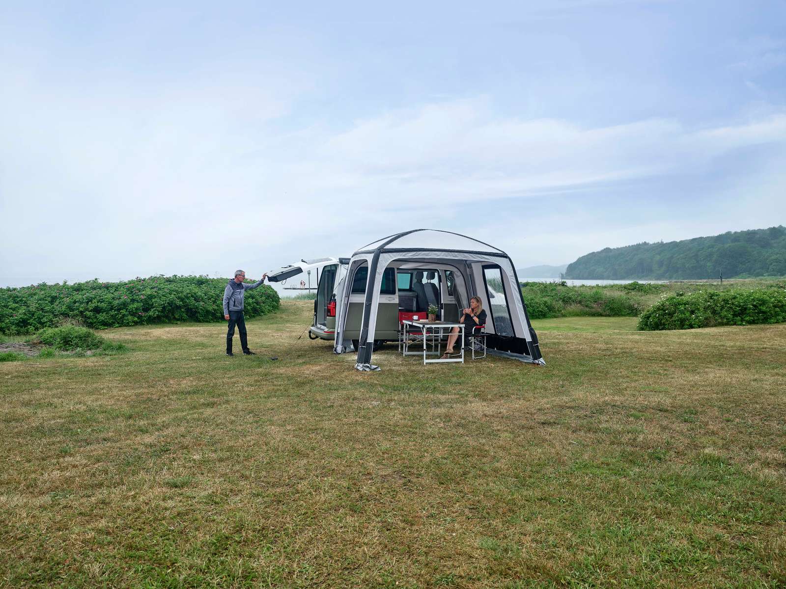 Det kan vara ont om plats i en van. Med Isabella Air X-Tension utökas boytan med hela 8,25 m2 och man får ett rymligt vardagsrum med högt i tak. En smart detalj med X-Tension är att man enkelt kan ta bort två av sidorna med hjälp av blixtlås och göra om lufttältet till ett soltak med vindskydd. Isabella Air X-Tension ger den ultimata friheten på campingsemestern. Den snabba och enkla monteringen med luftkanaler gör tältet lätt kan sätta upp och ta ner så att man kan komma vidare till nästa resmål. Om man stannar på campingplatsen och vill köra en runda kan X-Tension stå kvar och hålla platsen medan man utforskar omgivningen. Det enda man behöver göra är att koppla loss vanen och sätta fast baksidan med hjälp av blixtlås.