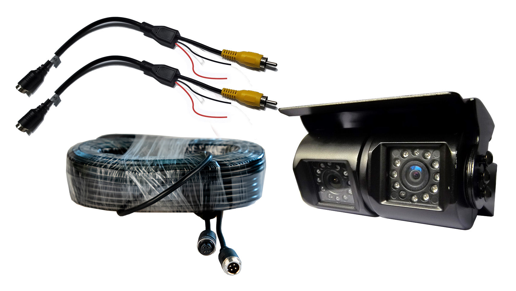 Dubbellinskamera HD med 20 m kabel samt adapter för inkoppling i befintligt multimedia-system i fordonet. Mått (LxBxH): 120 x 83 x 25 mm.