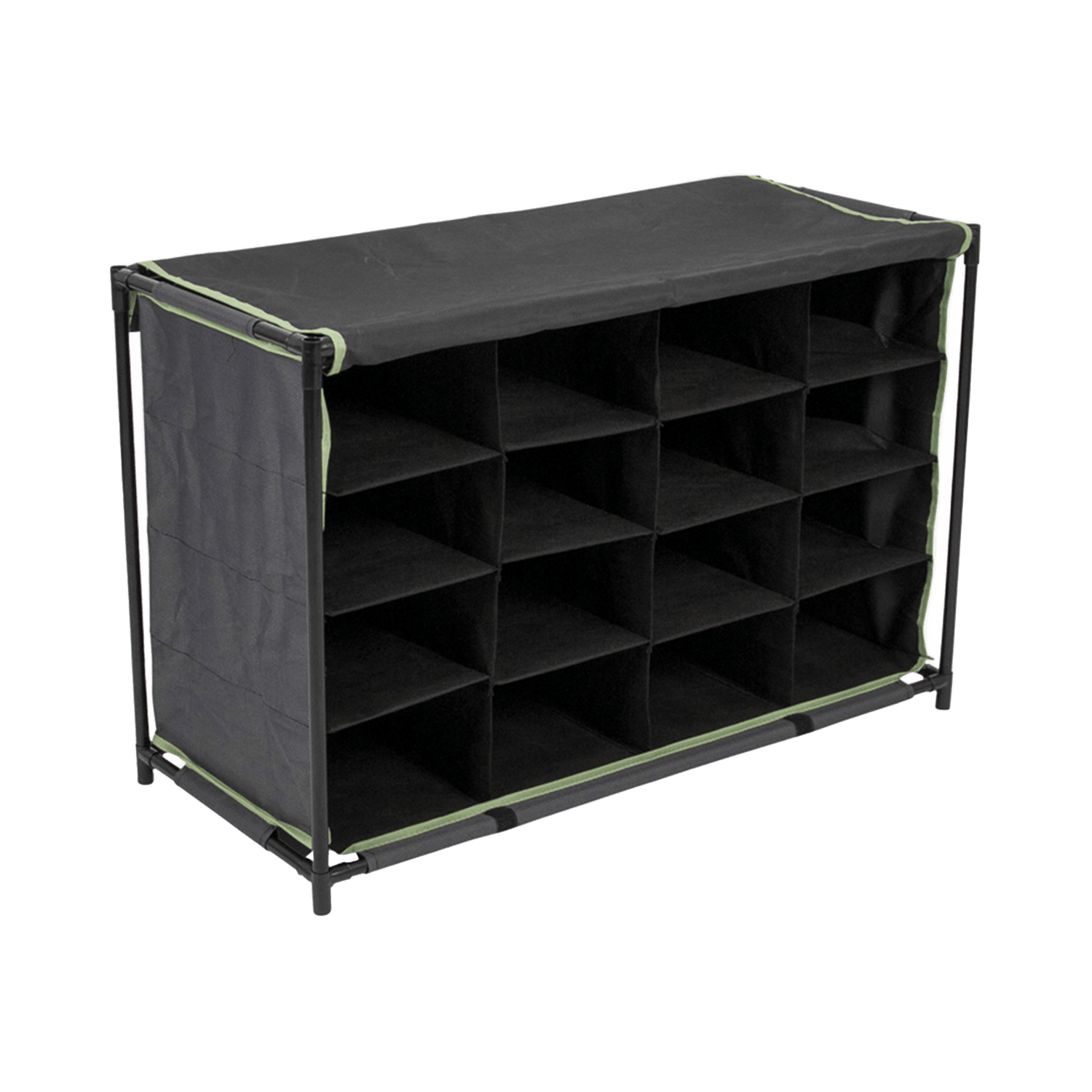 Denna robusta och praktiska förvaringshylla är både funktionell och lätt att hantera. Med flera fack ger den bra möjlighet att organisera och förvara saker på ett smidigt sätt. Hyllan är enkel att fälla upp och tar minimalt med plats när den är hopfälld. Det finns inga lösa delar, vilket gör den extra användarvänlig och säker att hantera.