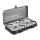 En enklare och lättare 2-lågig Cadac kokhäll med kastrullhållare. Drivs med vanlig påfyllnadsflaska – idealisk vid camping. Varje brännare har Piezotändning.