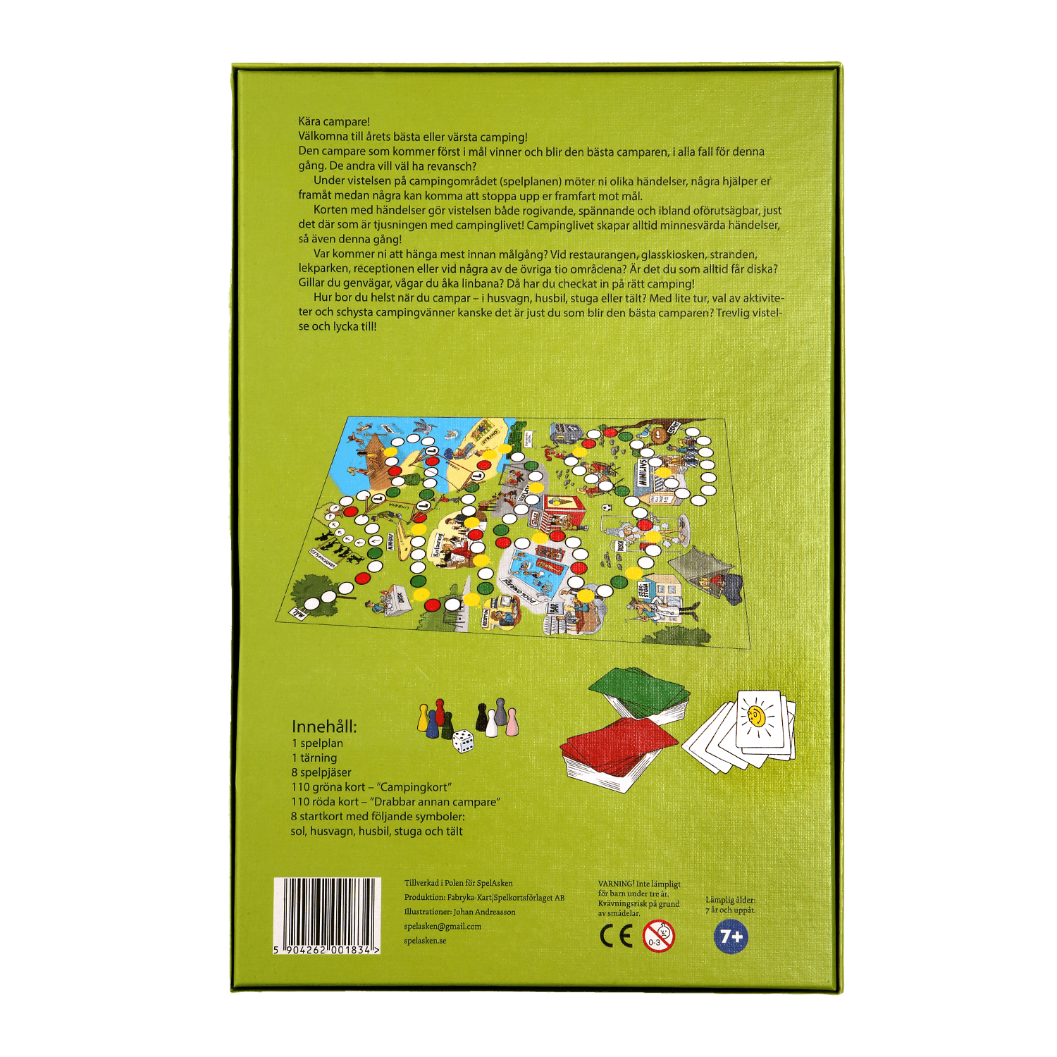 Under vistelsen på campingområdet (spelplanen) möter ni olika händelser, några hjälper er framåt medan några kan komma att stoppa upp er framfart mot mål. Korten med händelser gör vistelsen både rogivande, spännande och ibland oförutsägbar, just det där som är tjusningen med campinglivet.