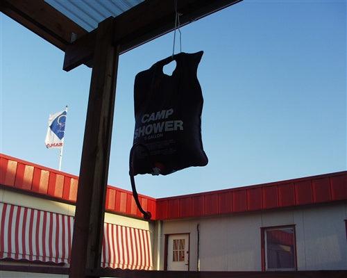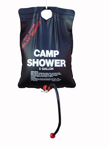 Campingdusch som värms upp av solen. Med duschslang, avstängningskran och bärhandtag. Rymmer 20 liter
