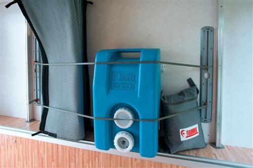 Fiamma Cargo Strap smart fästsystem för diverse last i lastutrymmet. Sparar utrymme och minimerar risken för skador under transport. Innehåller två väggskenor, fyra plasthakar och två gummiband samt 24 skruvar. Lastsäkrar upp till 20 kg.