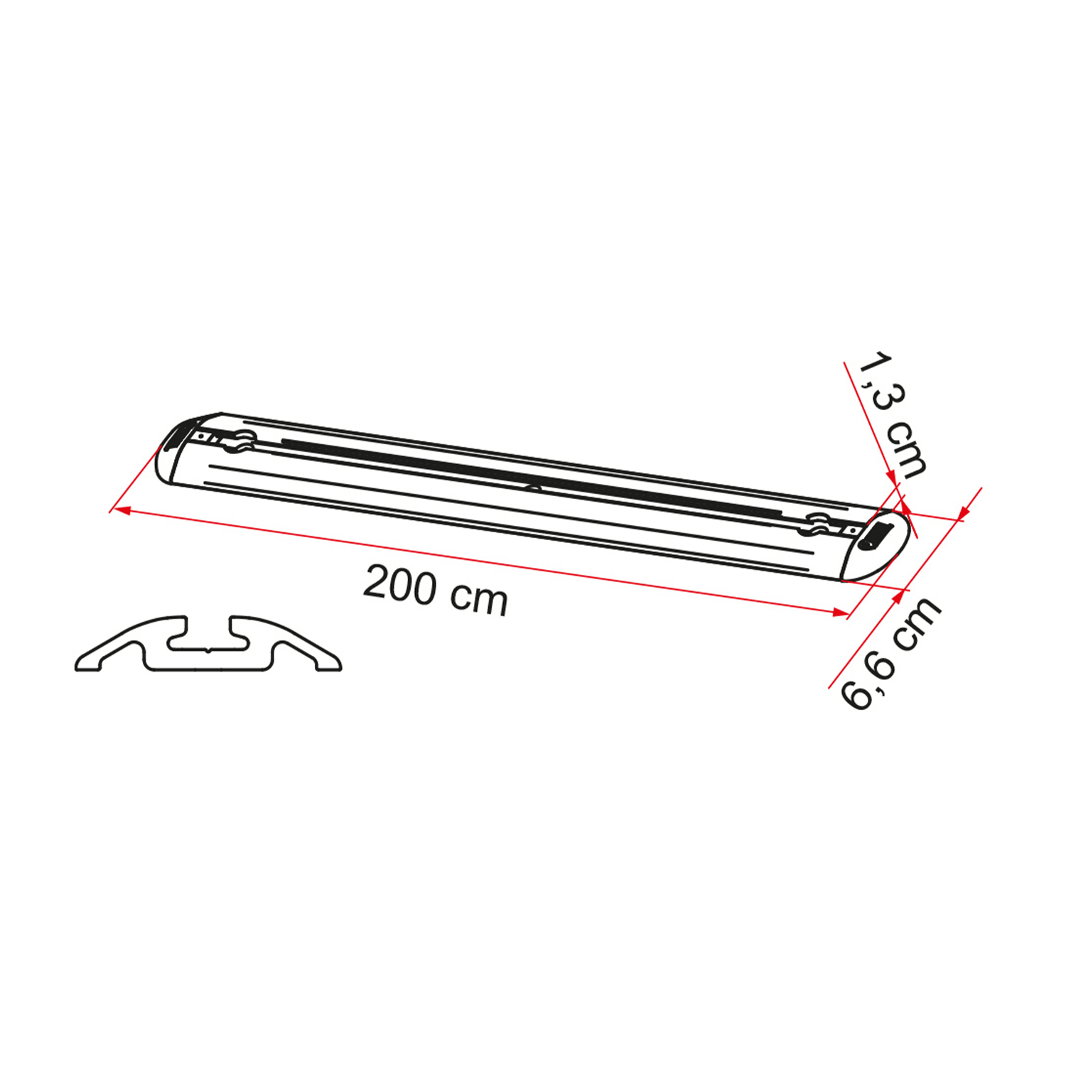 Fiamma garage bar Premium 200. Mått: 200 x 6,6 x 1,3 cm