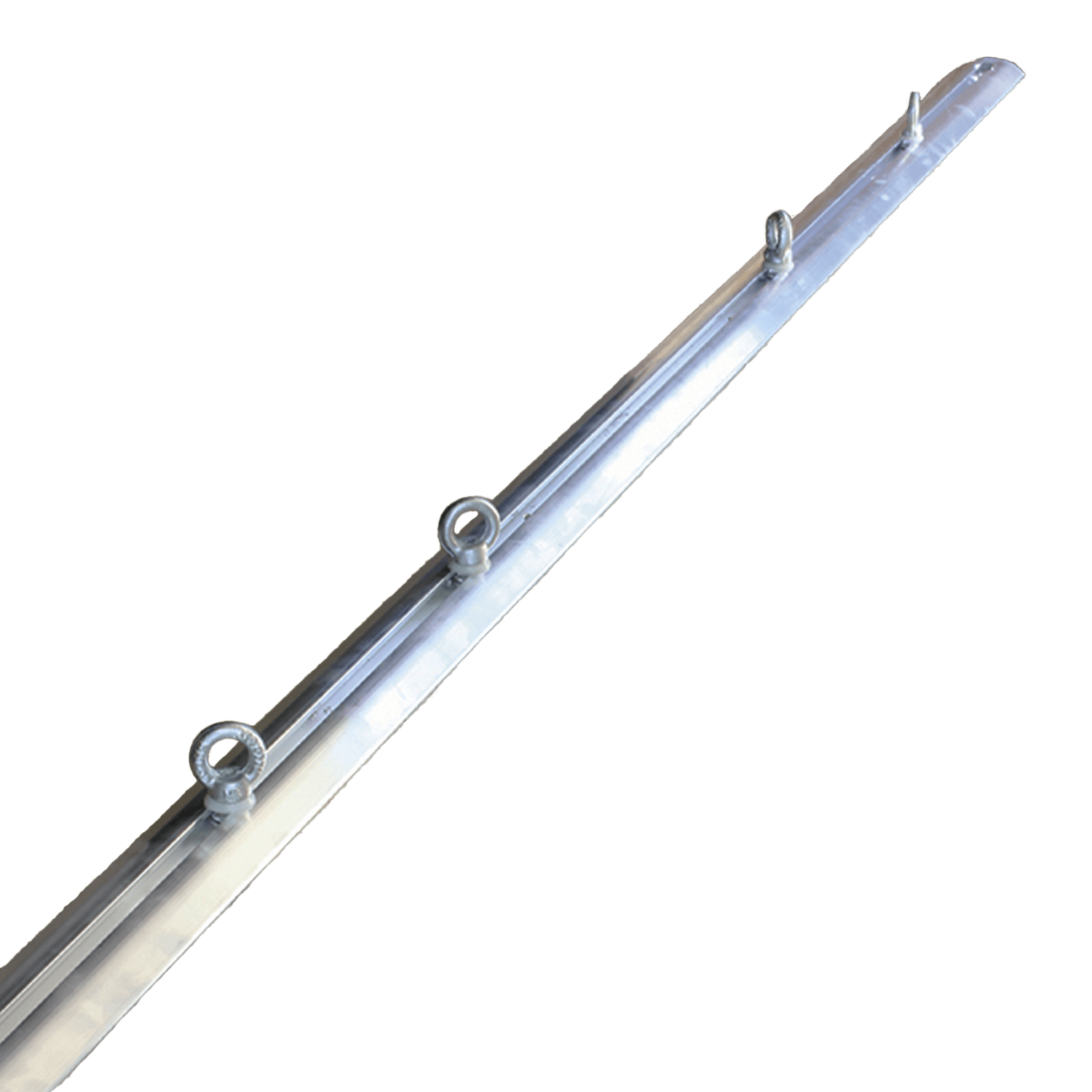 En ny version av Garage Bars, tillverkade för montering i garaget på din husvagn/husbil. Består av två skenor i eloxerat aluminium med två krokar och öglebultar. Kan monteras på väggen eller på golvet och krokarna kan enkelt fästas varsomhelst på skenan. Levereras komplett med sidostycken i plast. Mått: 200x6,6x1,3 cm