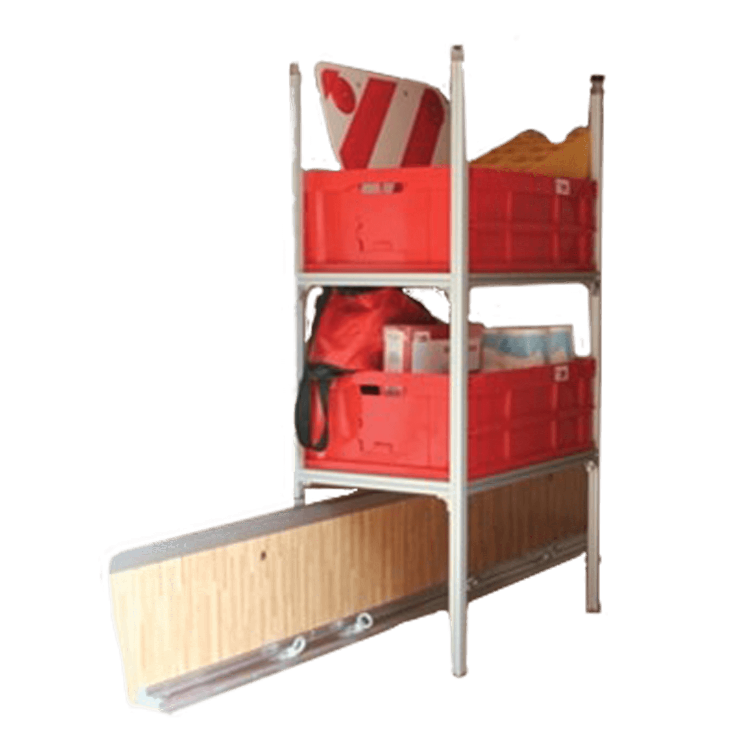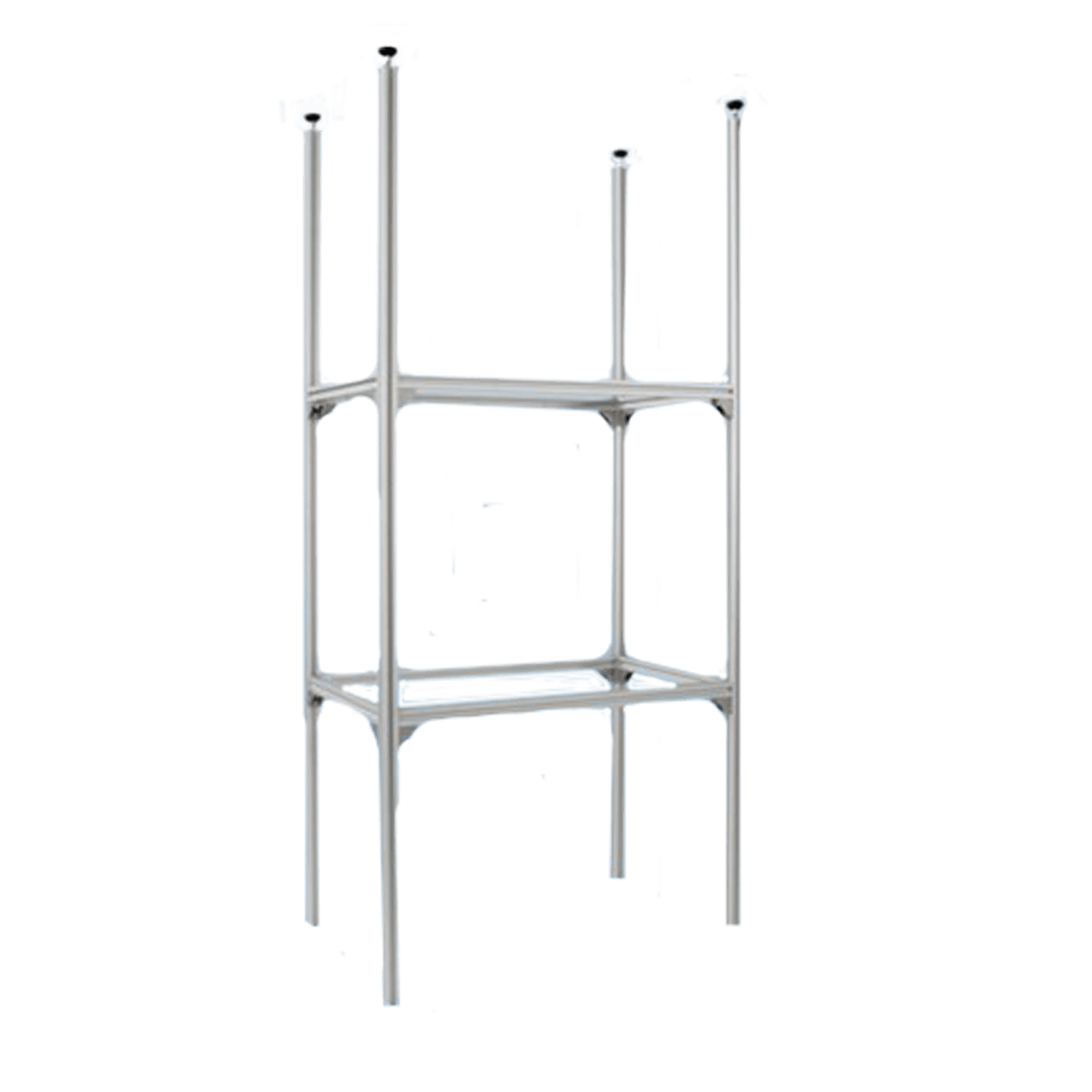 Grundutförande med en sektion med plats för tre hyllplan eller hopfällbara plastbackar. Justerbar höjd och kan även kortas vid behov. Grundsektion och tillbyggnadssektion med plats för 6 plastbackar. Grundsektionens mått: 64,5 x 41 x 143 cm. Vikt 3 kg.