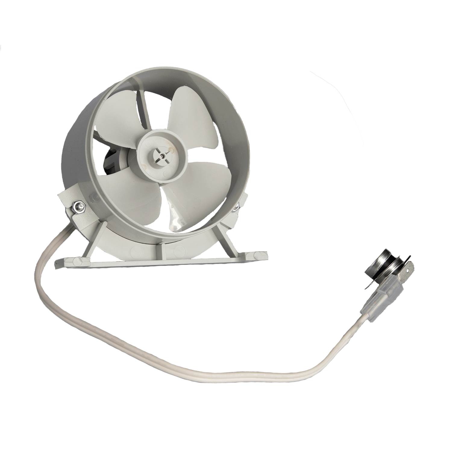 Kylskåpsfläkt, energisparande helautomatisk, färdig för montering. 12V/7W. Monteras bakom kylskåpet och startar automatiskt när temperaturen höjs. Kapacitet 60 kbm/tim. Helt avstörd från radio och TV. Diameter 80 mm.