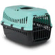 Blå plastbur, finns i två olika storlekar. Dörren/gallret är gjort av plast. På taket finns ett handtag samt skåror för att man ska kunna sätta fast buren med ett bälte eller en rem.