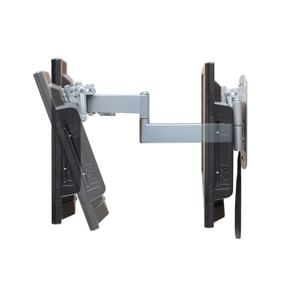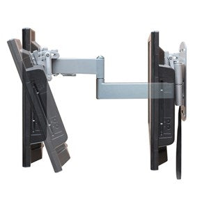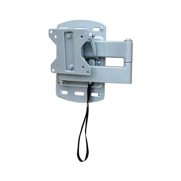 Ledbart och tiltbart TV-fäste som är låsbart i infällt läge och frigörs enkelt när man lossar spärren med ett band. Passar för Vesa 75 och 100. Den stora monteringsplattan, 220 x 140 mm, fördelar trycket mot väggen. Tillverkat av silverlackerat stål. Max längd: 350 mm. Max belastning: 30 kg.