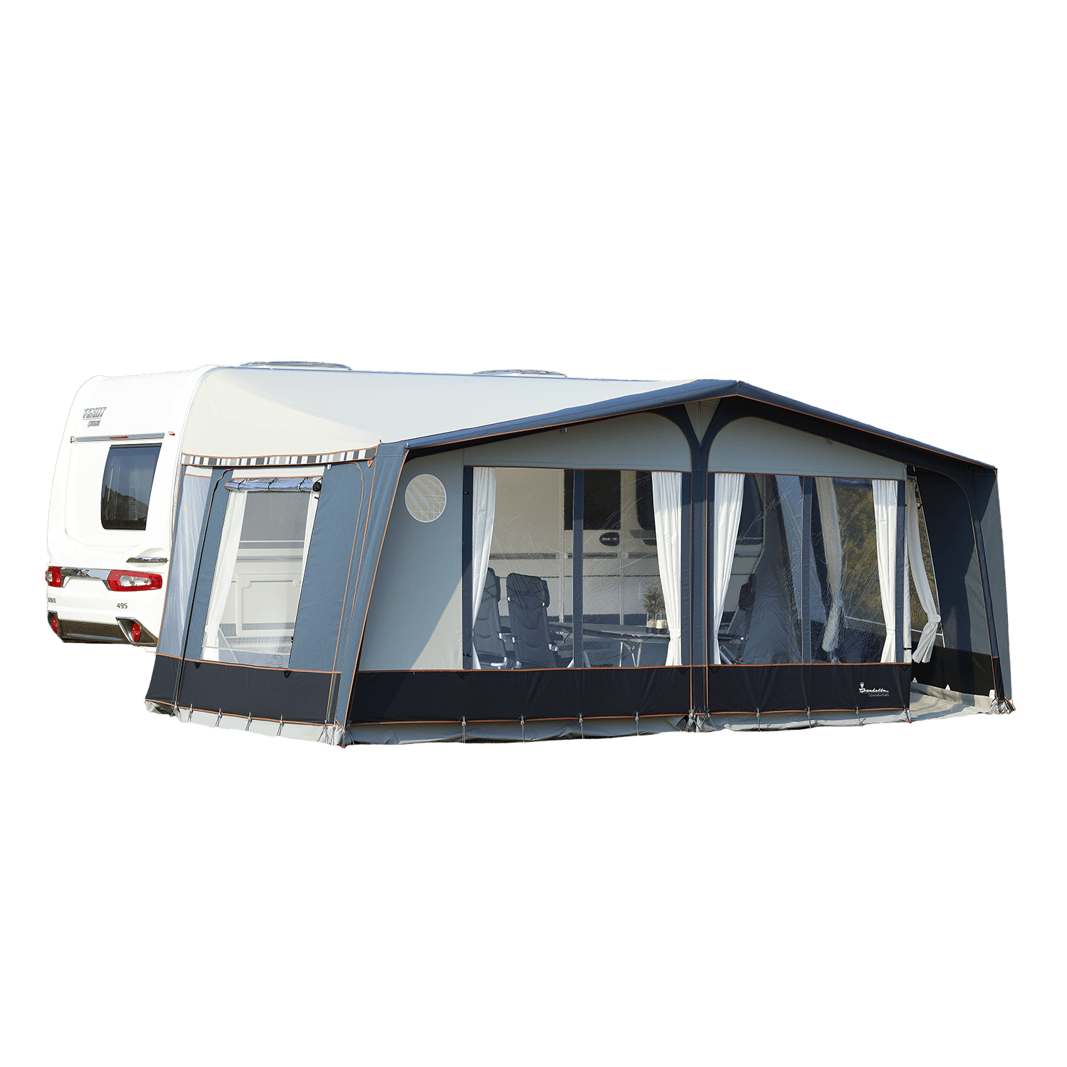 Commodore är en kombination av klassisk Isabella-design och moderna material. Djupet på tre meter och möjligheten att välja mellan tre stativtyper har stora fördelar, särskilt för dig som växlar mellan säsongscamping och resande och gärna vill ha gott om plats i förtältet.