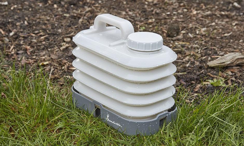 Enkel att ha med på resan. Vattendunken kan enkelt vikas ihop så att den blir helt platt och sparar utrymme. Lock med hål för vattenslang. Lock för transport utan hål. Godkänd för dricksvatten. Mått: 375 x 210 x 300 mm. Volym: 10 liter.