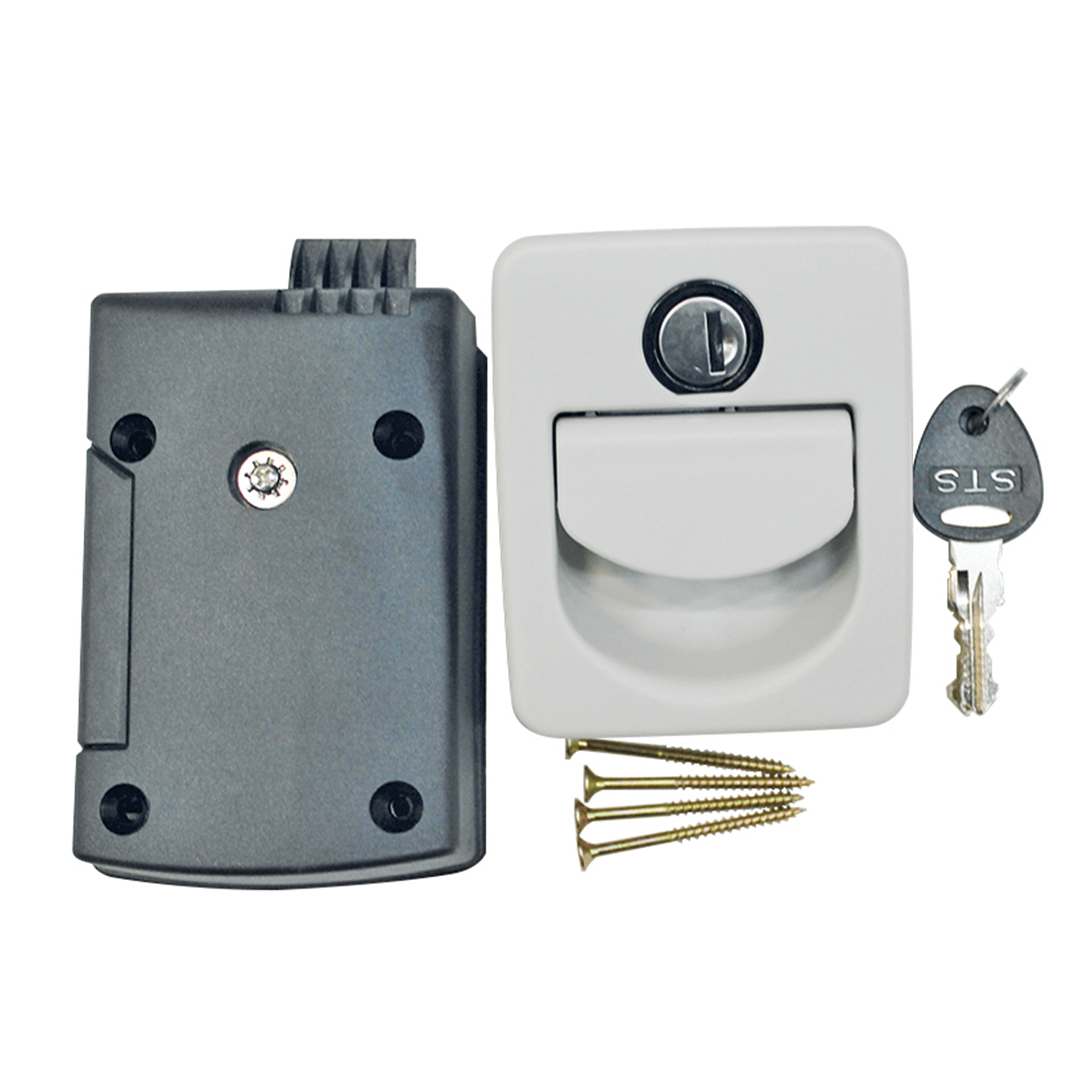 Lås för 35 mm dörr. Färg: Fiat Bianco. Mått ytterdel: 95 x 70 mm.