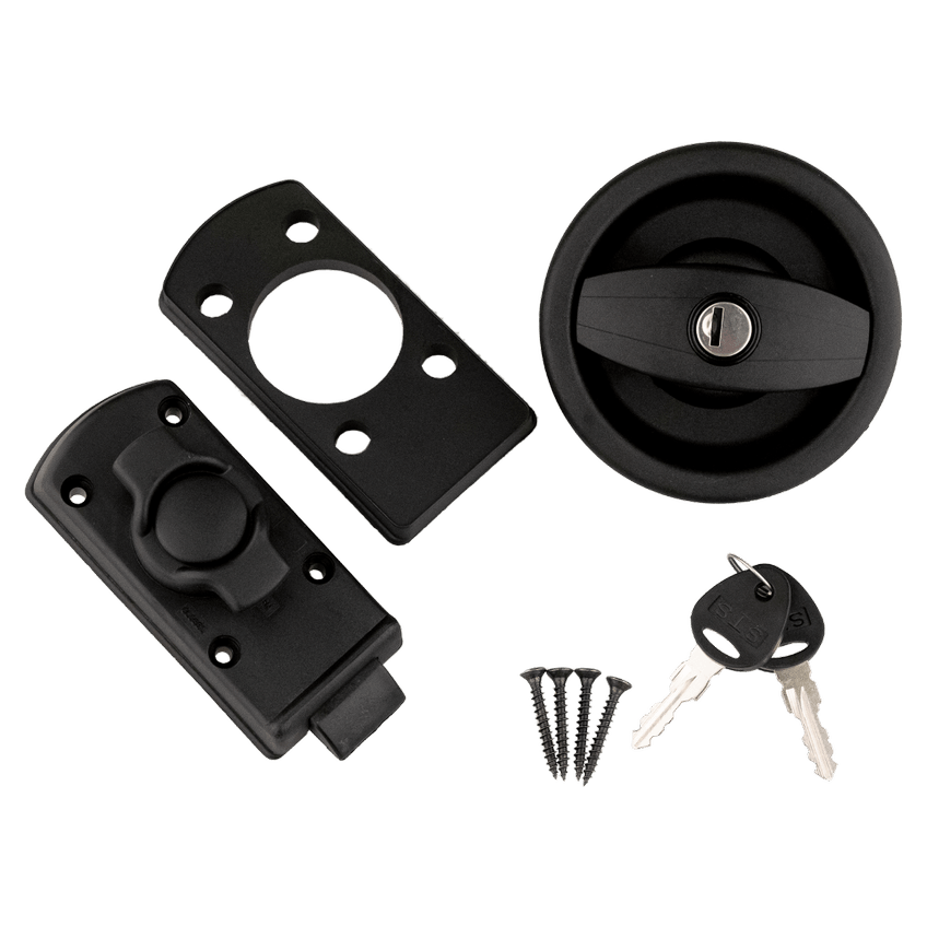 Lås universalmodell. Passar både höger- och vänsterhängda dörrar. Levereras komplett med 2 nycklar.