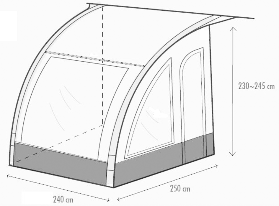 Mått (HxBxD): 230-250 x 240 x 250 cm.