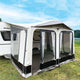 Lufttält för både husvagn och husbil. Ventura Air Dove är utformat för att smidigt utöka boytan under campingsemestern. Lufttältet är tillverkat i Europa och användningen av kvalitetsmaterial garanterar ett förtält som kräver minimalt med underhåll, har lång hållbarhet och hög komfort. Fronten och gavlarna är avtagbara, vilket skapar möjlighet till god luftcirkulation när det är varmt ute.