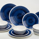 12 delars servis Seramika i 100% melamin bestående av: 4 st flata tallrikar Ø265mm, 4 st desserttallrikar Ø215mm och 4 st skålar Ø160mm. Servisen håller hög kvalitet och tål maskindisk.