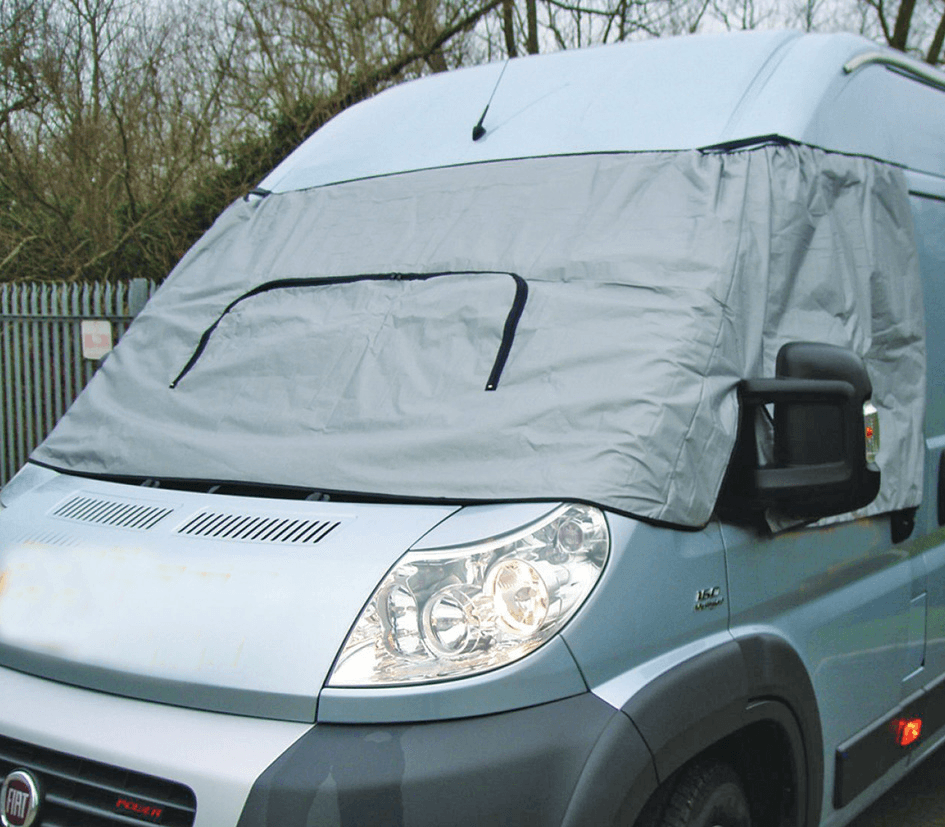 Mönsterskyddad isolermatta i universalutförande. Är försett med ett unikt blixtlåsförsett mittparti som gör det möjligt att se ut eller släppa in ljus i förarhytten vid behov. Isolermattan förhindrar kondens i förarhytten och håller husbilen sval på sommaren och varmare på vintern. Monteras genom att klämmas fast i dörrarna där en elastisk kant gör att isolermattan enkelt kan monteras på de flesta bilmodeller.