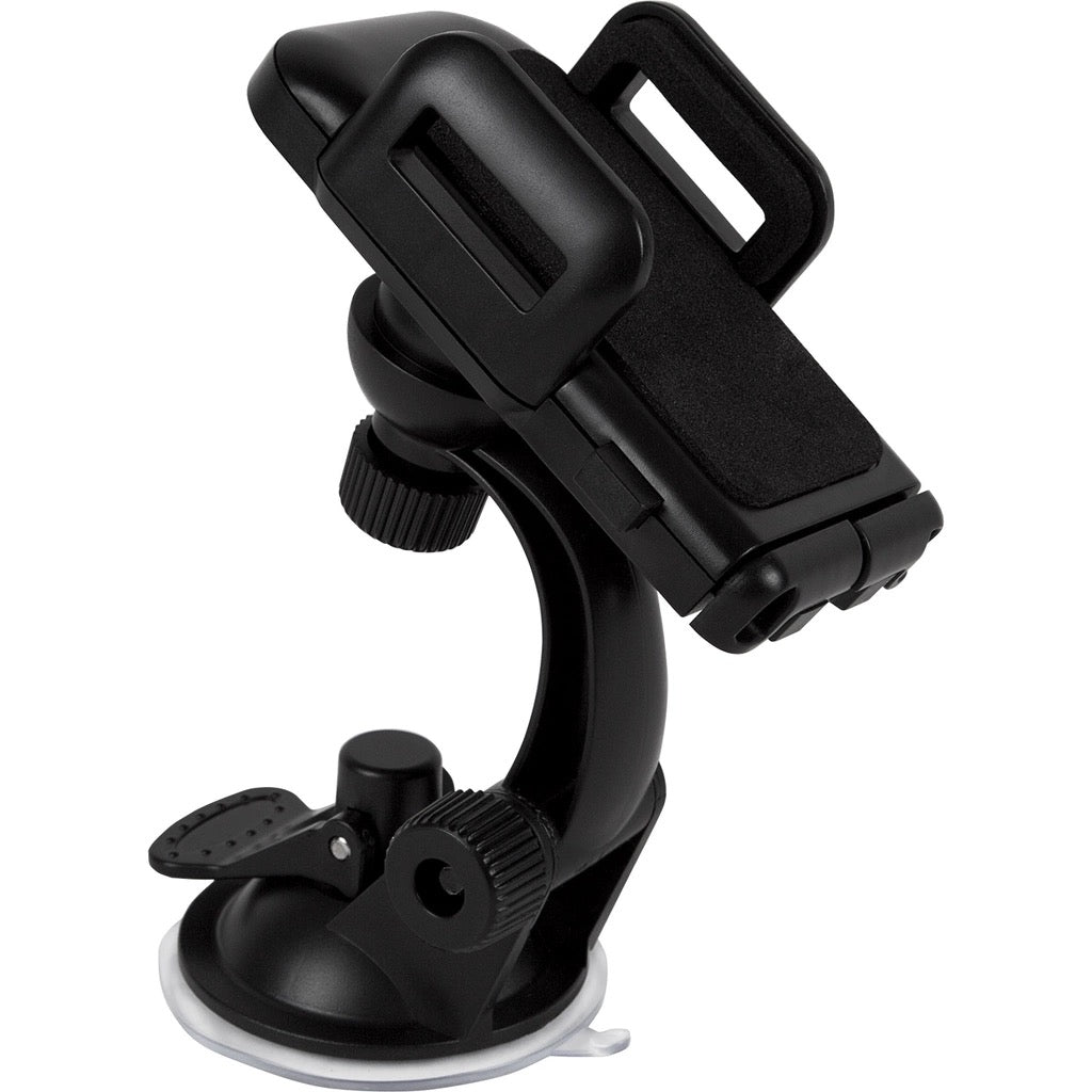 Universalhållare med sugproppsfäste samt adapterplatta. Hållaren passar de flesta telefoner på marknaden. Placera telefonen i hållaren och kläm ihop de vadderade sidorna för att hålla telefonen på plats. Med sin stabila konstruktion kan du enkelt justera telefonen efter önskemål och även vrida den till landskapsläge.