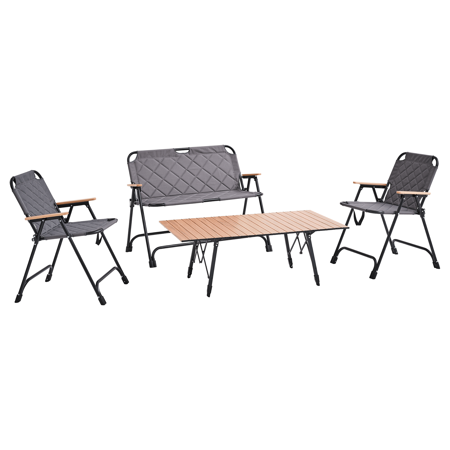Ett stabilt lättviktsbord av aluminium som tar liten plats hopfällt. Kan användas som matbord eller soffbord. Toppskiva av aluminiumlameller (55 x 11 mm). Inklusive förvaringsväska.