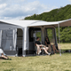 Frontsoltak Dove ger extra skugga framför Ventura Air Dove lufttält. Soltaket fästs smidigt med dragkedja och tre lätta glasfiberstänger.