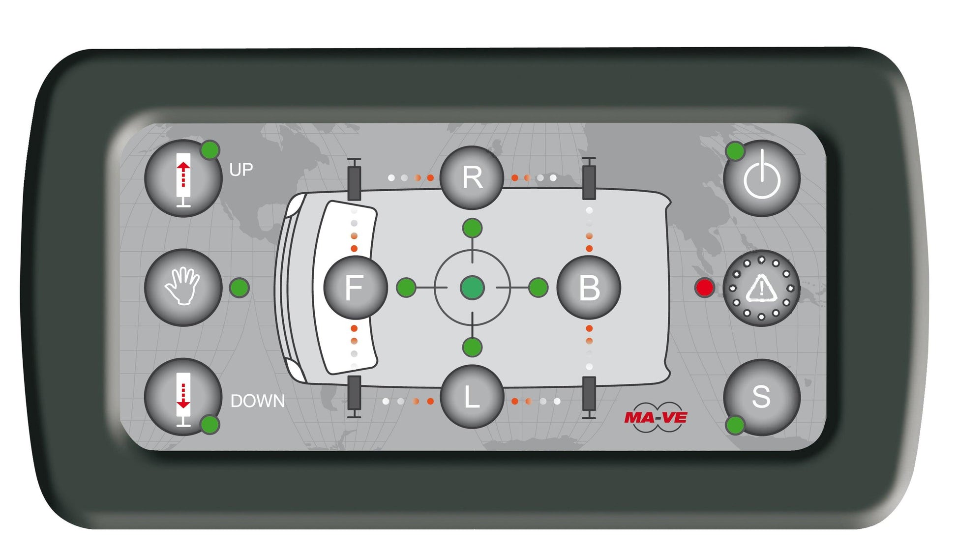 Manöverpanelen är praktisk, elegant och enkel att integrera i husbilen. Panelen fungerar på ett enkelt och intuitivt sett för alla funktioner, såsom automatisk/manuell nivåinställning, för att tömma gråvattentanken samt eventuella alarm. Färdigpressade slangar ingår (2 x 2,0 m / 2 x 3,5 m / 2 x 4,0 m / 2 x 5,0 m).