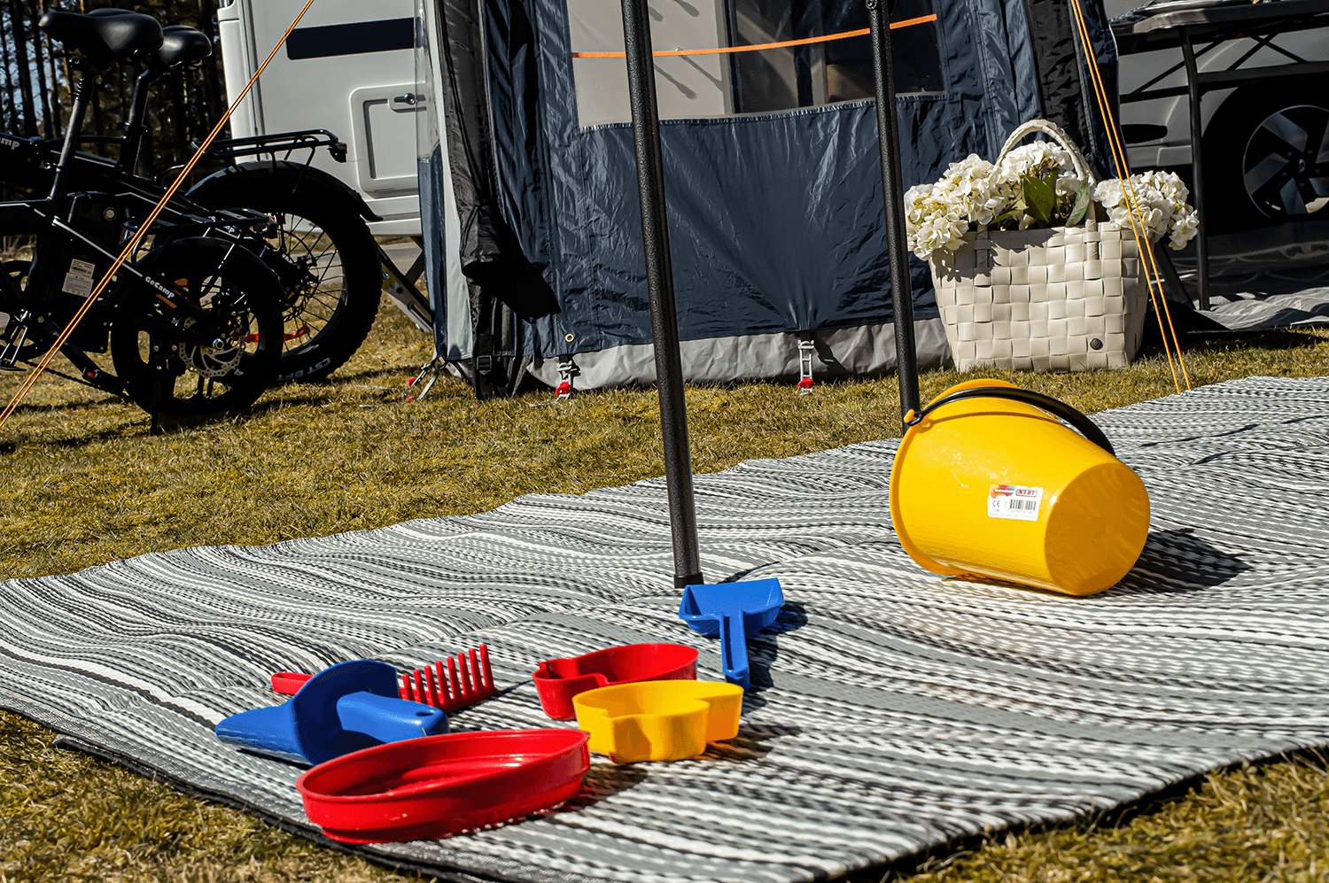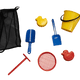 Praktisk ryggsäck i nät med roliga leksaker för stranden. Svensk tillverkning.