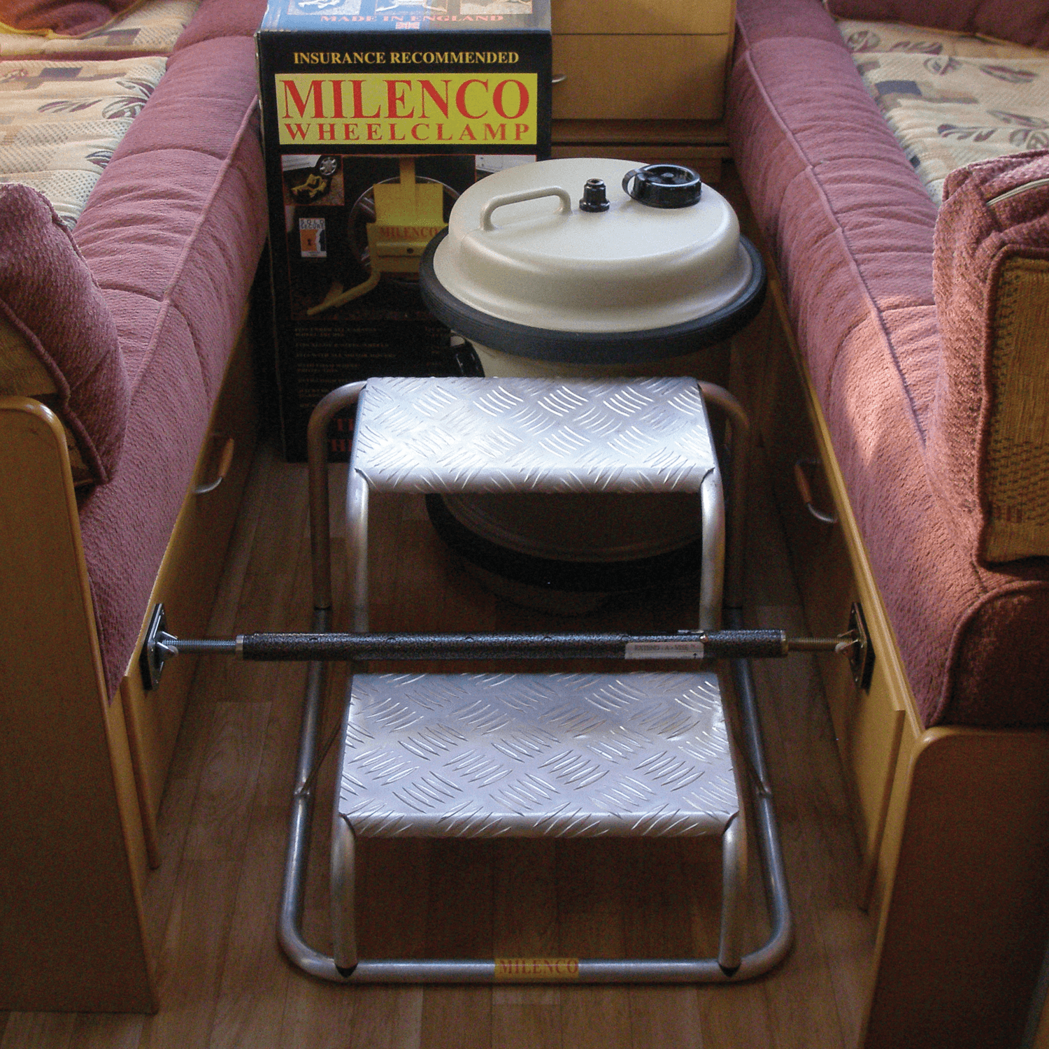 Teleskopstänger som används till att hålla lasten på plats under körning. Kan även användas för att säkerställa att inte lasten i husvagnen förskjuts så att kultrycket förändras under färd.