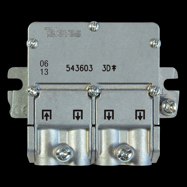 Televes Mini-fördelare, 3-vägs med Easy-F anslutning för SMATV. Den innovativa designen och den kompakta storleken gör Mini-fördelaren användbar praktiskt taget överallt, inklusive i små kopplingsboxar. Dessutom ger miniatyrkomponenterna andra elektroniska fördelar i form av förbättrade elektriska egenskaper och reducerat impulsbrus.