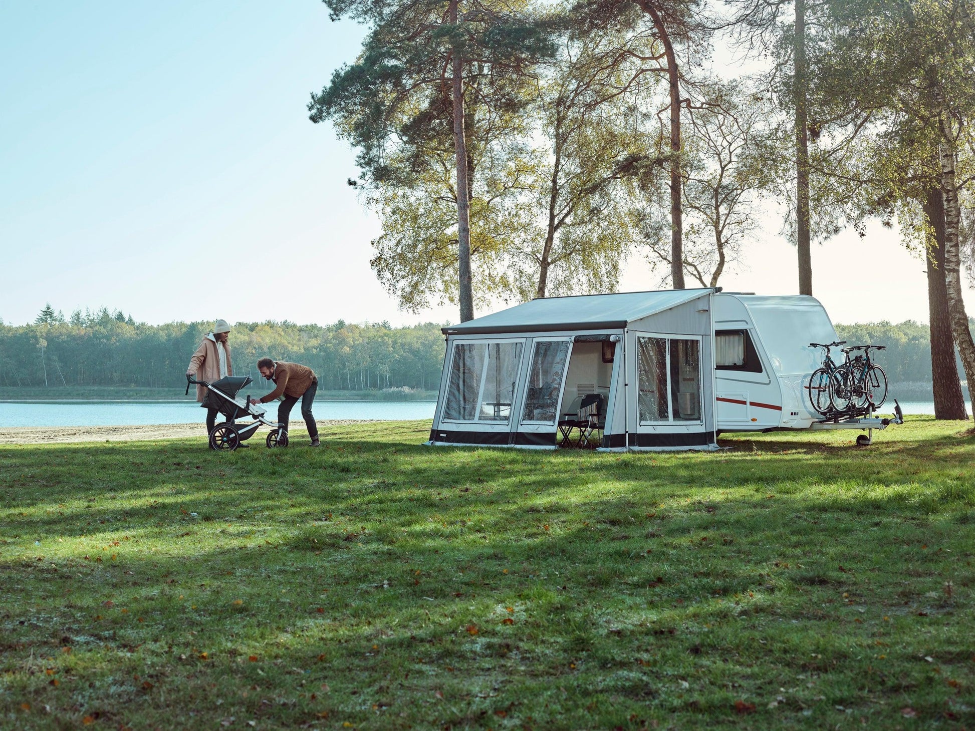 Leveransomfattning: Tältets nederdel är utrustat med en dubbel markkappa för bästa skydd mot smuts och regn. Vagnkappa och hjulskydd ingår och som förhindrar att vinden kommer in under husvagnen. Markistältet Veduta förvaras i två medföljande praktiska väskor.