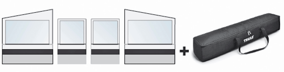 Komplett uppsättning markispaneler för minivan bestående av 2 st sidopaneler och 2 st frontpaneler (2x1,27 m) för markiser Thule Omnistor 5102 och 4900 i längd 2,60 m. Panelerna skyddar mot regn, vind och varje panel har ett stort tranparent fönster som släpper in ljus och skapar en rymlig känsla. En exklusiv väska ingår för att lagra paneler och tillbehör. Vikt: 12 kg. Monteringshöjd: 1,8-1,99 m.