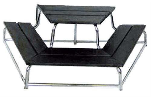 Trappsteg Elegance Chrome med betsade träribbor och kromat stålrörsstativ. Speciellt lämpad för långliggare. Höjd 18/35 cm. Nedre steg med totalbredd 100 cm / övre 54 cm. Stegdjup 20/25,5 cm