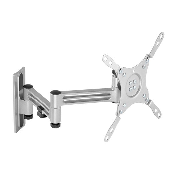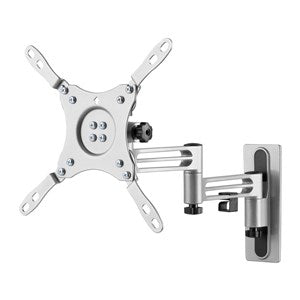 Extremt lätt och stabilt fäste med svängbar/lutande knut och låsbara vridpunkter. Tack vare Secure-Lock-systemet kan TV:n förbli monterad utan att skadas under färd med husvagn/husbil. Ett kabelhanteringssystem håller kabeln på plats. Inkluderar alphatronics förlängare och vattenpass.