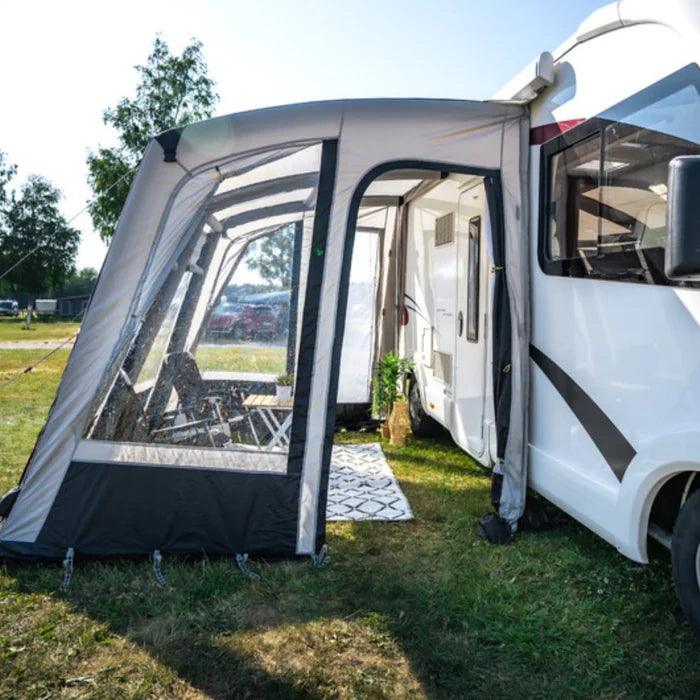 Tältet passar perfekt för dig som reser ofta och som vill resa lätt. Smart och funktionell konstruktion med luftkanaler gör att uppsättningen går mycket snabbt och enkelt. Inga stativdelar av metall används. Tältet har också tältvulster i två storlekar för att passa både husvagnars tältskena och husbilars markisbox.
