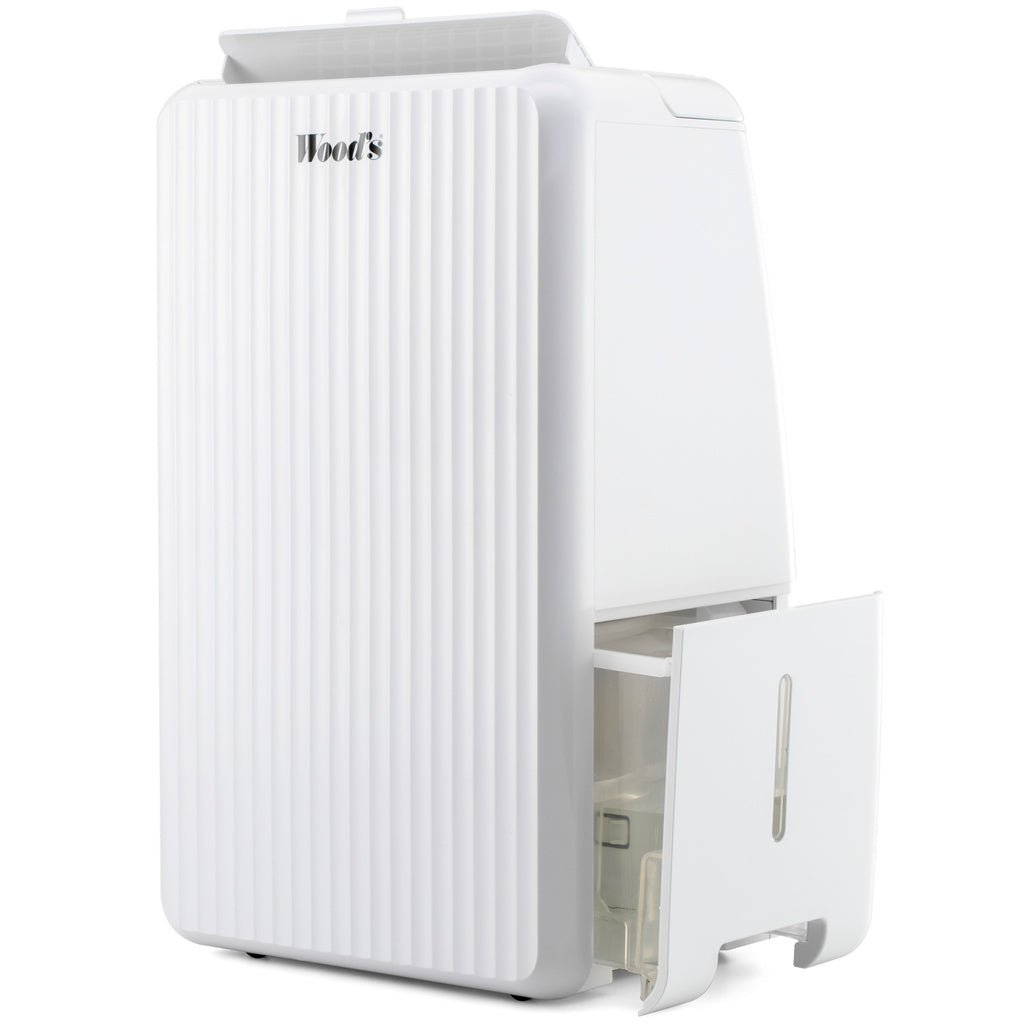 Wood's MRD10 är en kompakt avfuktare som är lätt att flytta med sig och som får plats nästan överallt. Denna smidiga avfuktare är lätt att använda och passar perfekt i mindre badrum, sommarstugor, båtar eller husvagnar. Behöver du en avfuktare till ett större och fuktigare badrum så kan den kraftfullare MRD14 bättre passa ditt behov. Wood's MRD10 får plats nästan överallt tack vare sin smidiga utformning. Med det praktiska handtaget flyttar du lätt avfuktaren dit den behövs för tillfället. MRD10 blåser ut torr luft på ovansidan vilket ger en “föneffekt” av tvätten som torkar snabbt. MRD10 har många fördelar som gör den perfekt för mindre badrum. Tack vare sin kompakta design passar Wood's MRD10 in i de flesta mindre utrymmena. MRD10 torkar tvätten effektivt och du sparar samtidigt energi. Luftfiltret som renar luften under avfuktningen sitter tillsammans med den rymliga vattenbehållaren på maskinens baksida. Wood's MRD10 får enkelt plats i små utrymmen och du kan använda den i kompakta badrum eller för att torka tvätten i hemmet. MRD10 skapar också en mer bekväm miljö då mögel, överflödig fukt och lukt hålls på avstånd.